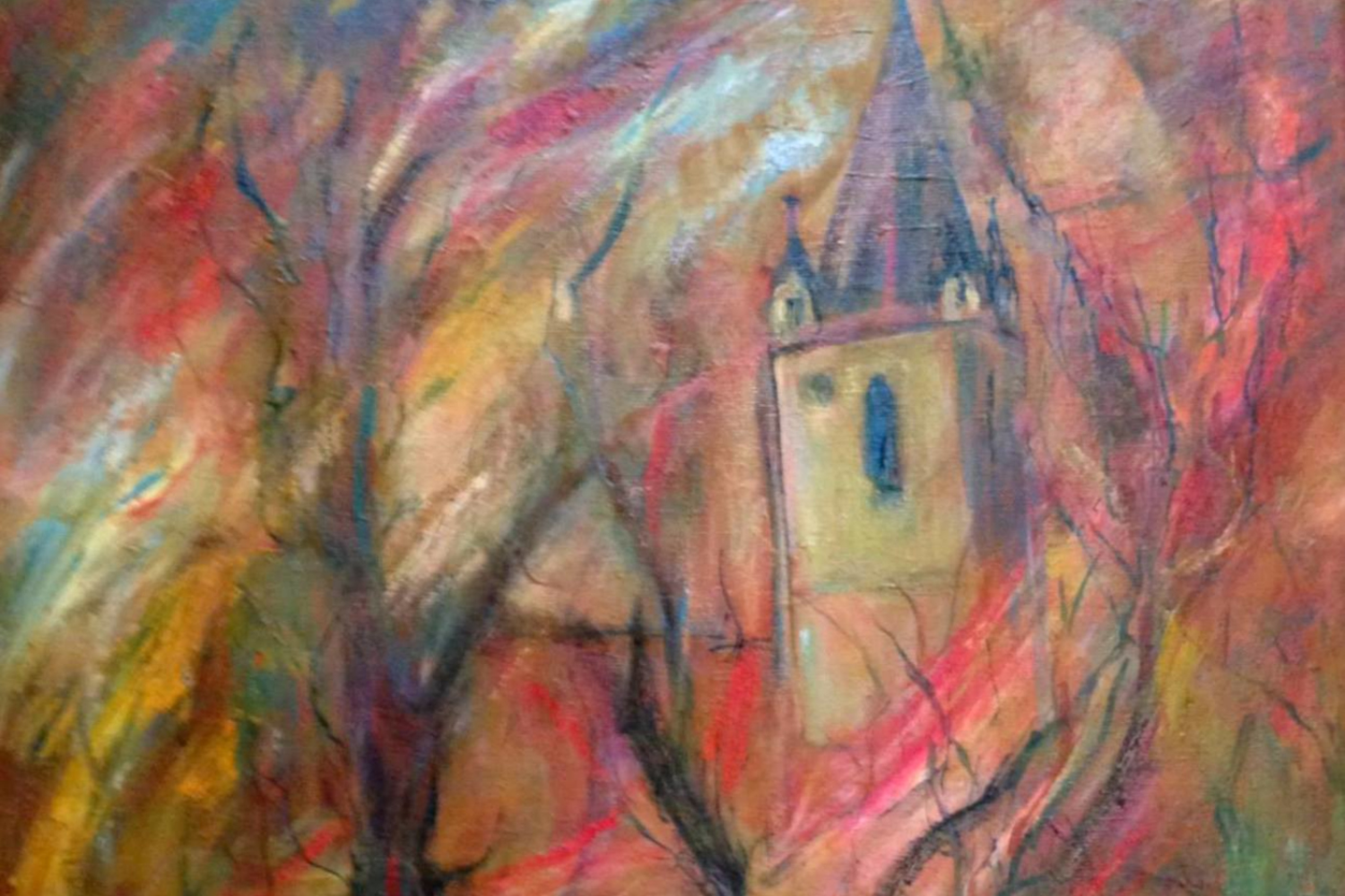 Késő ősz van, vagy már télkezdet. Az őszi színek leörvénylenek fáról, bokorról, ahogy az 1929. november 29-én Ravában született Kedei Zoltán (számomra a Vár-lak remetéje) Vártemplom tornya című képén.