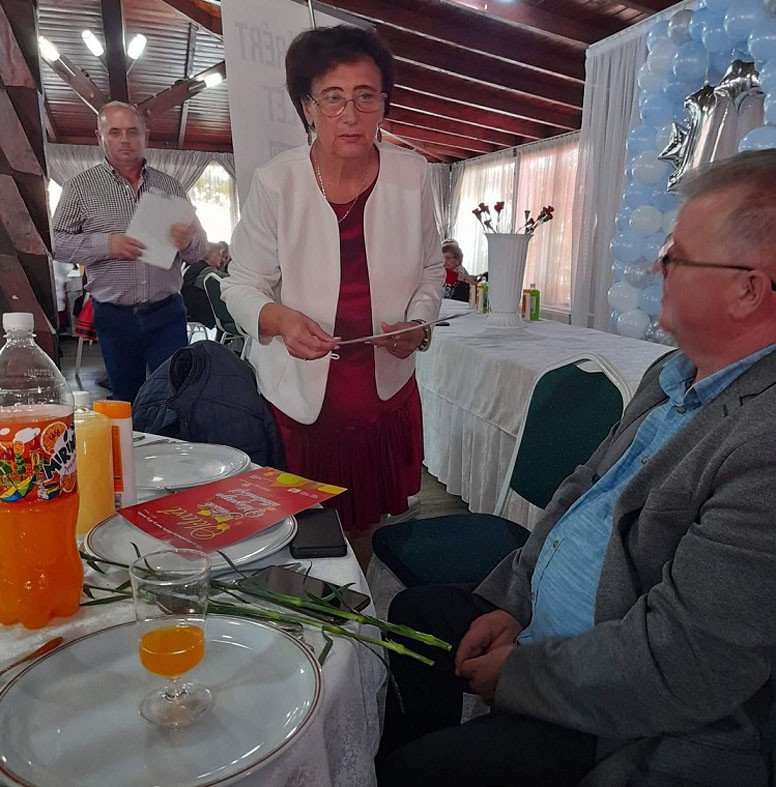 Az idősek világnapja alkalmából vasárnap délutánra hívta ünnepelni a helyieket az egyesület. Idén nyolcvan személyt szólítottak meg (mindannyian betöltötték a 65. életévüket). Az érkezőket népviseletbe öltözött fiatalok, az egyesület irodalmi körösei vezették be az épületbe, akinek pedig nehezére esett a gyaloglás, annak segítettek a helyszínre szállításában – tudtuk meg Székely Ellától, az egyesület programfelelősétől, aki Menyhárt Csegzi Botond elnökkel együtt köszöntötte a meghívottakat, majd felolvasta a polgármester üdvözlő sorait. Székely Ella Életfáim címmel tartott előadást az öregedésről, erre összpontosítottak az ünnepi műsor fellépői is: Kilyén Ilka színművésznő a lányával és férjével a helikoni költők műveiből állított össze és mutatott be zenés-énekes irodalmi műsort. Az ünnepi együttlétet az egyesület egy-egy szelet tortával, egy-egy szál virággal és természetesen sok szeretettel „édesítette” meg, majd krémszappant és tusfürdőt tartalmazó csomaggal ajándékozta meg a jelenlevőket. Azoknak, akik betegség vagy egyéb ok miatt nem tudtak jelen lenni, a fiatalok a hét folyamán elviszik az ajándékot és oklevelet. Meghitt, gyönyörű percek ezek az alkalmak, az emberek nagyon várják, de nem azért a csekély ajándékért, amit az egyesület adni tud, hanem azért, mert egy napot rájuk áldoz, rájuk figyel a közösség – mondta el lapunknak Székely Ella. Az idei alkalom mottója: „Nem az évek számítanak az életünkben, hanem az élet az éveinkben”. A kezdeményezést évek óta a Maros Megyei Tanács támogatja, amely idén kétezer lejt ítélt meg az egyesület páyázatára.