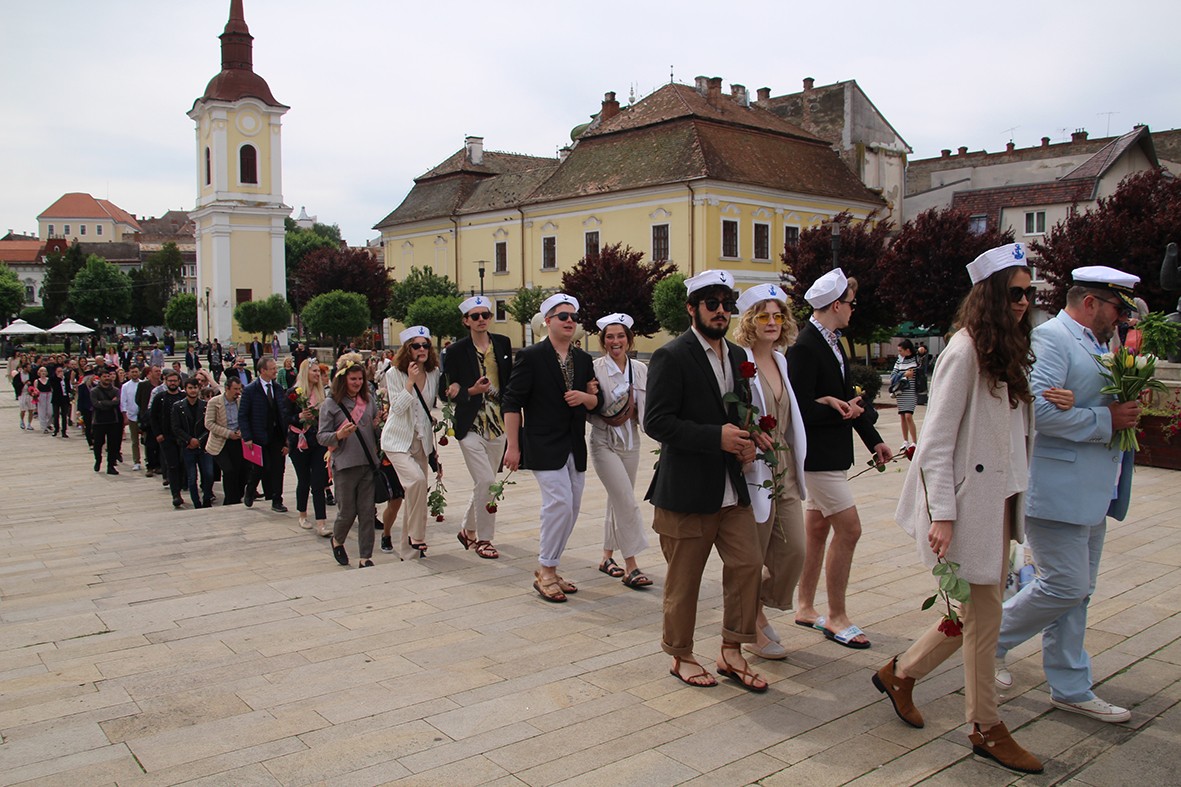 Amint azt dr. Balási András rektorhelyettes elárulta, utolsó pillanatban derült ki, hogy végül meg tudják tartani a ballagási ünnepséget, amelynek forgatókönyve szerint a magyar és román karok végzős hallgatói szombat reggel a Köteles utcai alma materből vonultak a Rózsák terén át a Nemzetihez, ahol délelőtt 11 órakor kezdődött az ünnepség. Felszólaltak többek között az intézmény oktatói, vezetői és Soós Zoltán polgármester is, a hallgatók pedig rövid előadásokkal gazdagították az eseményt.