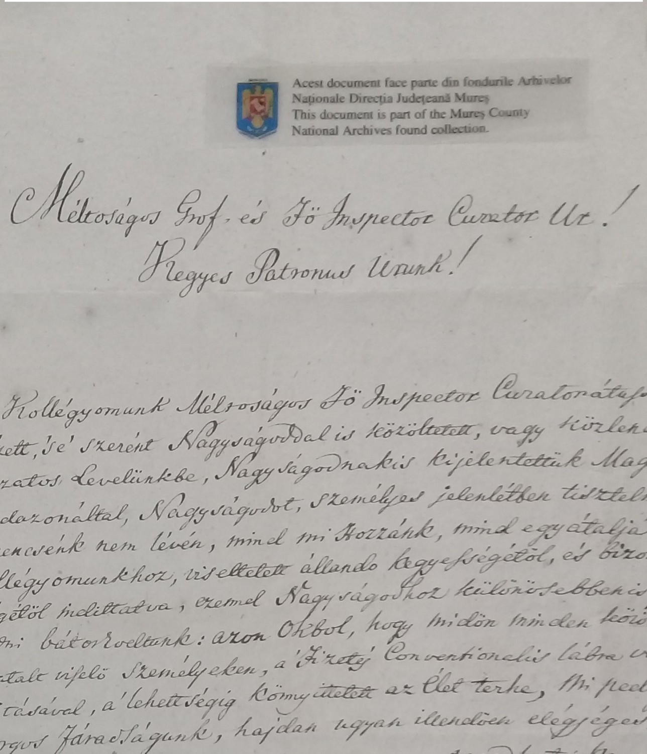 „Méltóságos Grof és Fő Inspector Curator Ur! 2