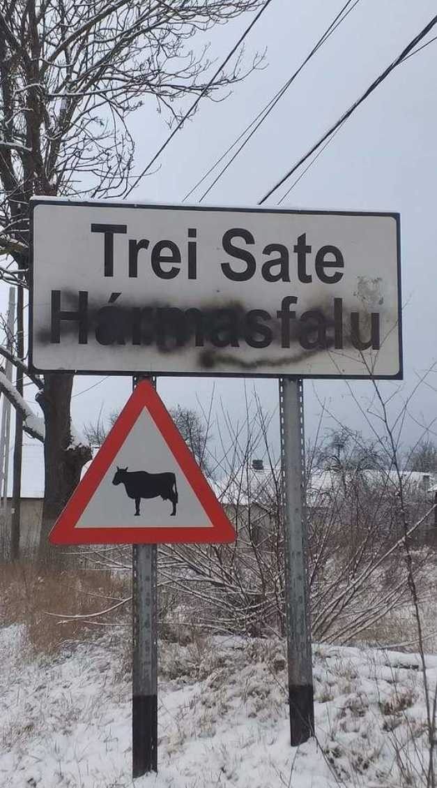 Szombaton éjszaka a Hármasfalu, valamint a Hargita megyei Székelyszentlélek, Székelyudvarhely, Máréfalva és Csíkszereda egy-egy helységnévtábláján valaki lefújta fekete színű festékkel a magyar neveket. Mivel mindenik település a 13A jelzésű országút mentén fekszik, és az illető mindenik esetben ugyanolyan színű festékszórót használt, gyaníthatóan ugyanarról azon elkövetőről lehet szó, s mivel minden esetben csak az egyik helységnevet fújta le, egyértelműen a magyar közösség megsértése a cél.