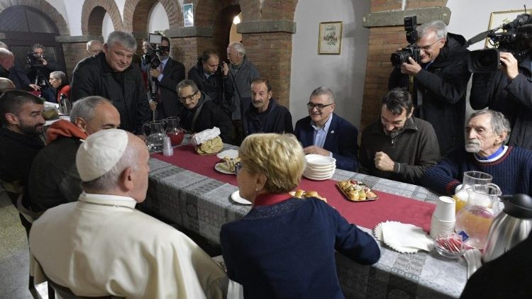 Hajléktalanokkal találkozott Ferenc pápa