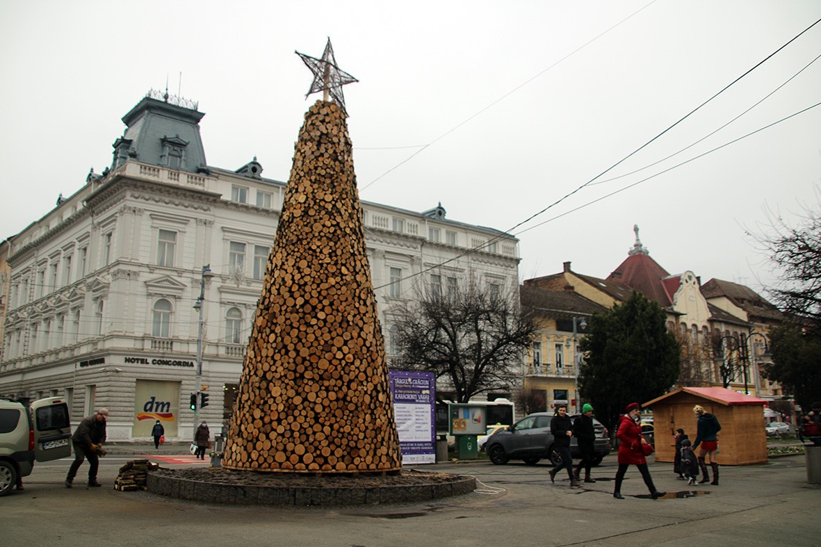 A Rotaract Téka Club kezdeményezésére fahasábokból épült karácsonyfa Marosvásárhely főterén, a virágóra helyén. A csöppet sem szokványos karácsonyfaállítás egy jótékonysági projekt része, ugyanis a fahasábokat az ünnepek lejárta után nehéz anyagi helyzetben élő családoknak ajándékozzák oda tűzifaként, emellett pénzadományokat is gyűjtenek, hogy a hátrányos helyzetűeknek a téli idényben segítsenek a számláikat kifizetni.
