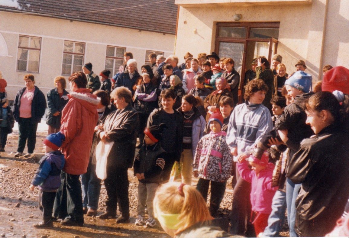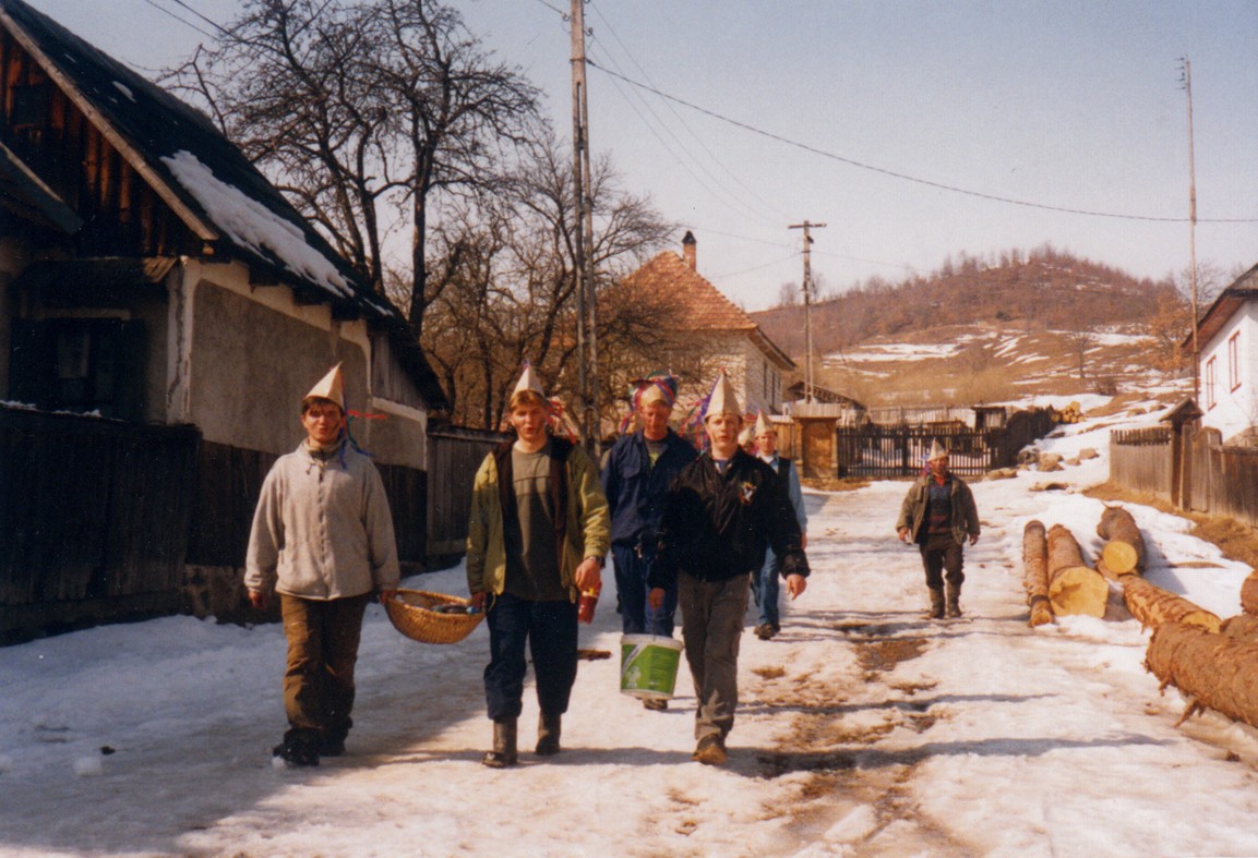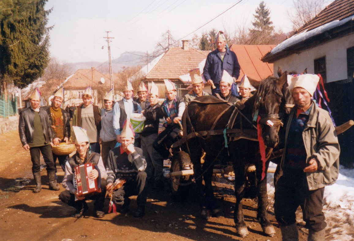 A farsang végi szokások hagyományos rendjéről többeket, de különösen Szász Józsefet (szül. 1922) faggattam a kilencvenes évek közepén. Gyermekkorában, a harmincas-negyvenes években a házasemberek szervezték a gyüttögetést, kezdte visszaemlékezését. Aki bírta magát, mindenki mehetett, legtöbben legények voltak. Akkor a bál megkezdődött vasárnap, volt úgy, hogy már szombaton este. Volt egy táncház, s a rendezők kivették ezt a táncházat, ott mulattak. „Délelőtt még pihentünk egy kicsit, s aztán megindultunk gyüttögetni, hétfőn is, kedden is, púpos napján. Úgy tízen, tizenötön gyűltünk össze az elején, fiatalabbak és idősebbek, a végire összekerültünk harmincan-negyvenen is. Fársángos ruhába öltöztünk, én például nagyanyámnak a szoknyáját s a fodros blúzát vettem föl, a szoknya földig ért. Mások másféleképpen öltöztek, úgy mondták, ilyen maszkurába. Az arcunkat bekormoztuk, olyanok voltunk, mint az ördögfiókák. Sapka volt a fejünkön, ilyen taniszli- vagy csákóféleség, s arra aztán voltak aggatva szalagok. Mindenféle színű szalag lelógott. Egyikünk volt a könyvelő, azt mondtuk neki, jegyző, amelyik felírta, hogy mit adtak.” Volt, amikor kosárral mentek, s abba rakták, amit kaptak, s volt úgy is, hogy szekérrel. Az úton végig énekeltek, és azokhoz a házakhoz mentek be, nyitottak kaput, ahol leány volt. Mentek a fiatal házasokhoz is, az öregekhez nem. Zenészek is jártak velük, húzták, s a farsangosok megtáncoltatták a házi leányokat, asszonyokat. Adományként, ahol nem adtak tojást, szalonnát, kolbászt, savanyú káposztát, maguk próbálták megszerezni a tyúkólból, kamrából, padlásról, vagy pénzt kaptak. „Amikor végigjártuk a falut, visszajöttünk az egyik társunk, egy módosabb legény udvarára. Az asszonyok nagy lábasokban megsütötték a tojást, óriási rántottát csináltak kolbásszal, szalonnával, a káposztacikát is felvágták, úgy ettük a rántottát.” A mindkét napi falufeljárást nagy evés-ivással, közös mulatsággal fejezték be.