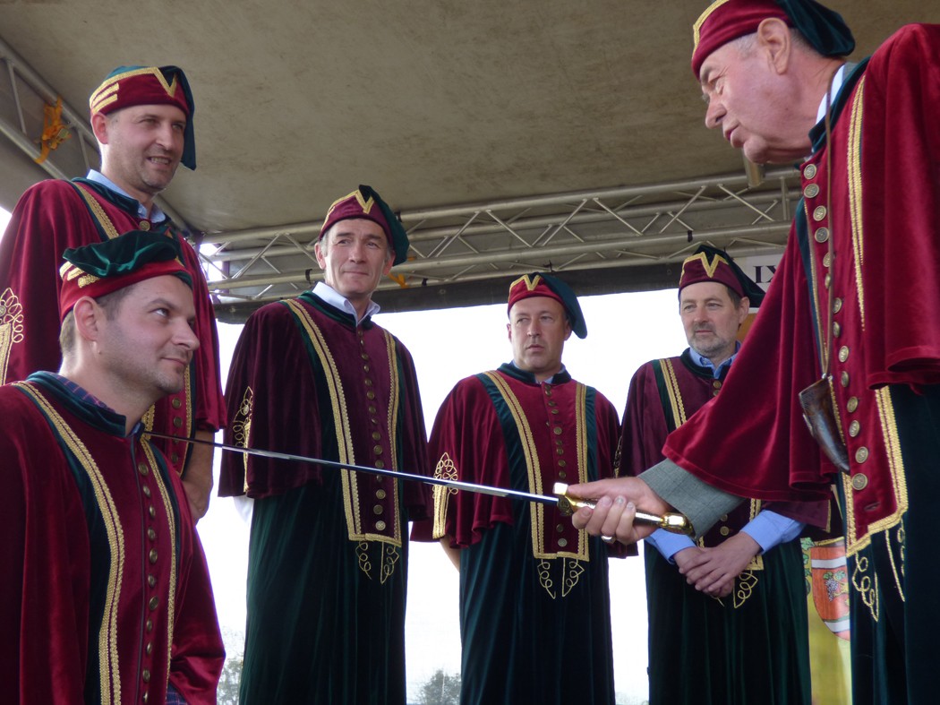 Mielőtt azonban id. Balogh Gyula, a rend ceremóniamestere pallossal lovaggá ütötte volna a jelölteket, azoknak számot kellett adniuk tudásukról. Az elméleti kérdések arra is kitértek, hogy milyen borospoharat töltünk meg leg-inkább, milyen bor dukál a pörkölt mellé, megy-e a sörre a bor, milyen érzékszervi sorrendben ítéljük meg a bort, de azt is tudniuk kellett, ki volt az a 19. századi magyar, aki a kaliforniai borászatot megteremtette. A gyakorlati próbán pedig mindenkinek bekötött szemmel kellett megállapítania, milyen bort tartalmaz a kezébe adott pohár. Ezután közösen tettek esküt arra, hogy a borrend hírnevének megőrzésén dolgoznak majd, borfogyasztásuk kulturált és mérsékelt lesz, tisztelettel hajtanak fejet a szőlőműves verejtékes munkájával készített borok előtt, de arra is fogadalmat tettek, hogy amíg a Kis-Küküllő vize mossa e szőlők gyökereit, szomjas torkukat kimondottan küküllőmenti borral fogják locsolni.