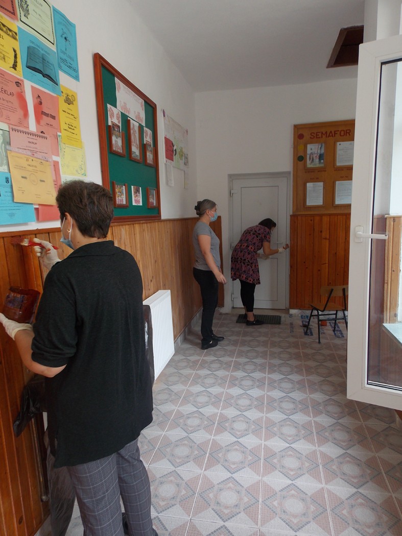 Az iskolában rendezés, átalakítás folyik, hogy a járványügyi követelményeknek megfelelően rendezzék be a termeket. Előnyt jelent, hogy amikor még sokkal több iskolás volt a községben, jó nagyra tervezték az osztálytermeket, így ma az előírt távolságot könnyen be lehet tartani. A tanintézmény rendezett kívül-belül, s ottjártamkor nagy meglepetésemre a pedagógusok festették a faburkolatot, hogy tisztábbak, szebbek legyenek a folyosók is, egy másik csapat pedig a tágas könyvtárat rendezte. Még maradt egy-két nyílászáró, amit ki kell cserélni, de a következő napokban az is elkészül, és a kisebb és nagyobb diákok szép környezetben, jó körülmények között kezdhetik az iskolát – jegyezte meg Nagy Enikő tanárnő.