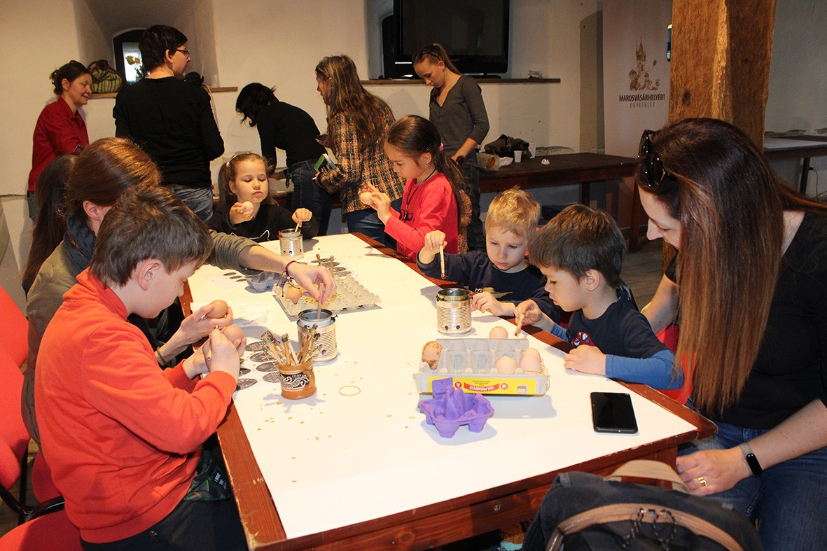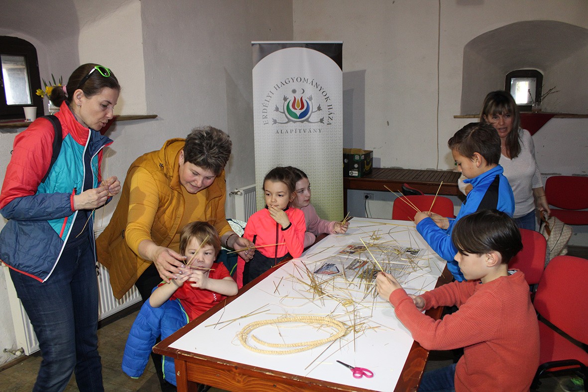 Szombat délelőtt a Kádárok bástyájában sorra íródtak a gyimesi motívumos piros tojások, szalmából pedig tojástartók és virágok is készültek. Az Erdélyi Hagyományok Háza Alapítvány szervezte kézműves-foglalkozásokon főként kisiskolások szorgoskodtak szüleikkel együtt, de egy „mindjárt” 6 éves fiúcskát is „tetten értünk” a tojásfestők között, aki nyolcéves nővérével és édesanyjával közösen készítette a húsvéti kosárba valót.