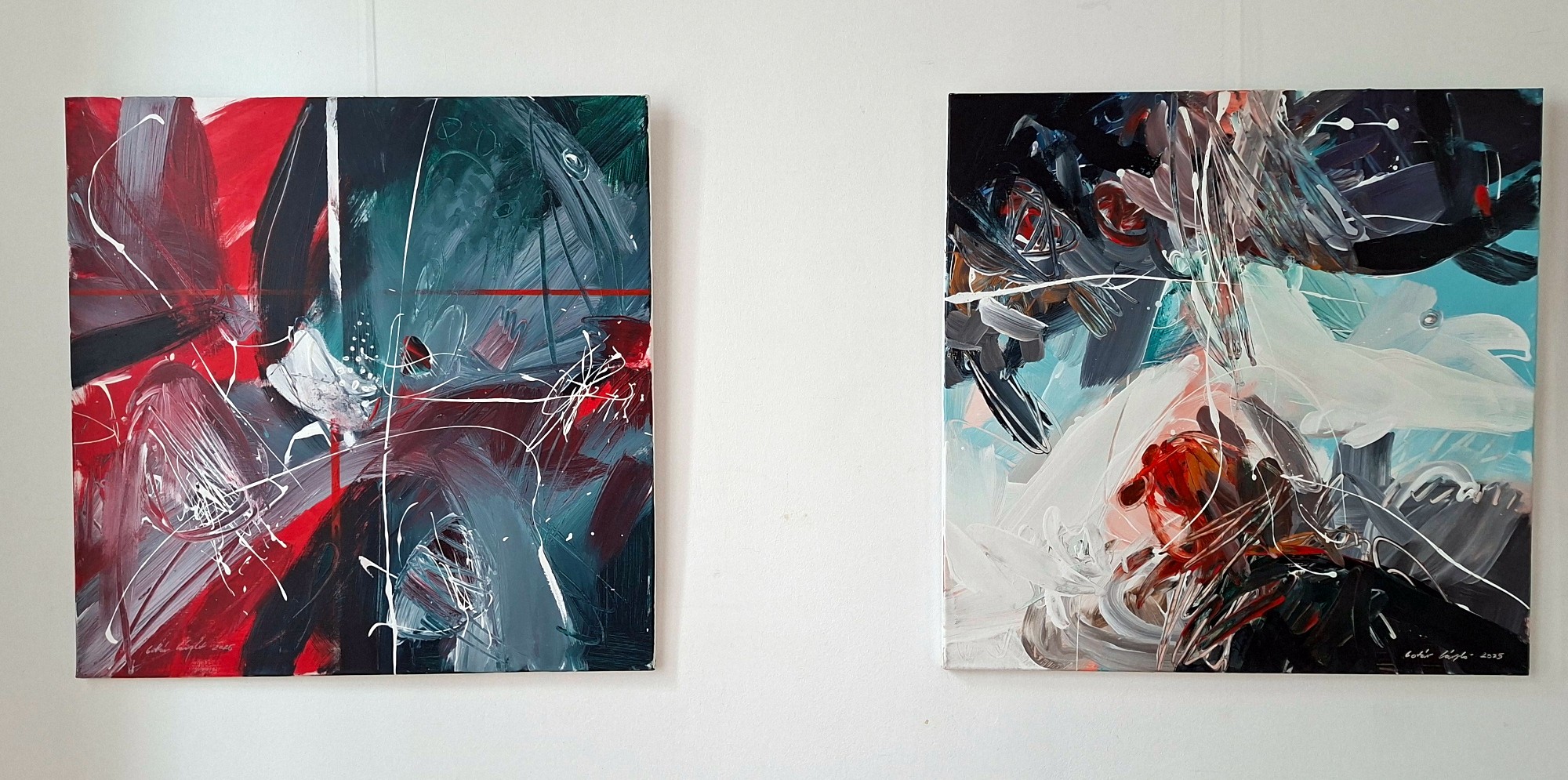 Ez a két alkotói attitűd ma párbeszédbe lép. Első pillantásra talán eltérnek, de a felszín alatt gyökereik összeérnek, két folyó, amely ugyanabba a tengerbe tart. Munkáik nem az elismerés utáni vágyból születnek, hanem az alkotás öröméből, abból a szabadságból, amely csak az önvizsgálatból fakadhat. Együtt mutatják meg, hogy az absztrakció nem egyetlen út, hanem sokféle lehetséges megközelítés.