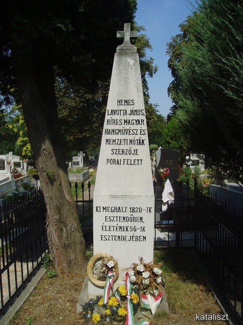 Lavotta János síremlékét 1831-ben egyik tisztelője, Újfalussy Mihály állíttatta.