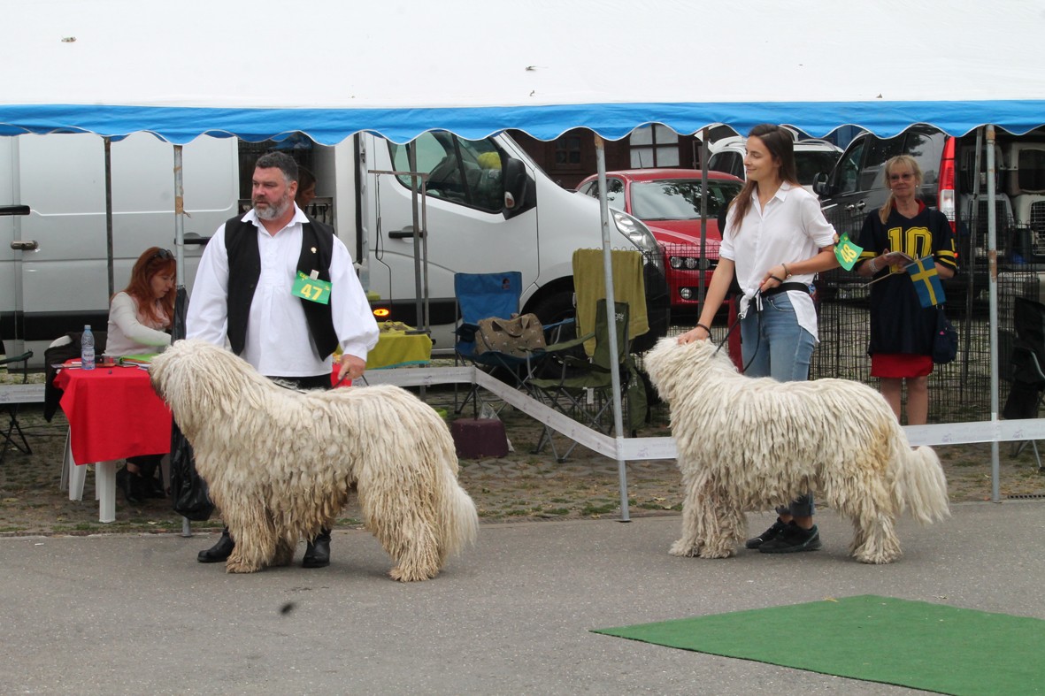 Szombat délelőtt a megszokott rendben zajlott a kifutókban a zsűrizés, a későbbi órákban sorra kerülő vagy a versenyen már túlesett ebek pedig a legnagyobb nyugalomban sziesztáztak vagy sétáltak a gazdikkal a liget fái alatt. Mindössze egy németjuhász-páros törte meg időnként területvédő ugatással a harmóniát. Rövid körsétánkon őket jobbnak láttuk elkerülni, a legtöbb versenyző azonban némi simogatás ellenében megengedte, hogy gazdájával, illetve felvezetőjével pár szót váltsunk.