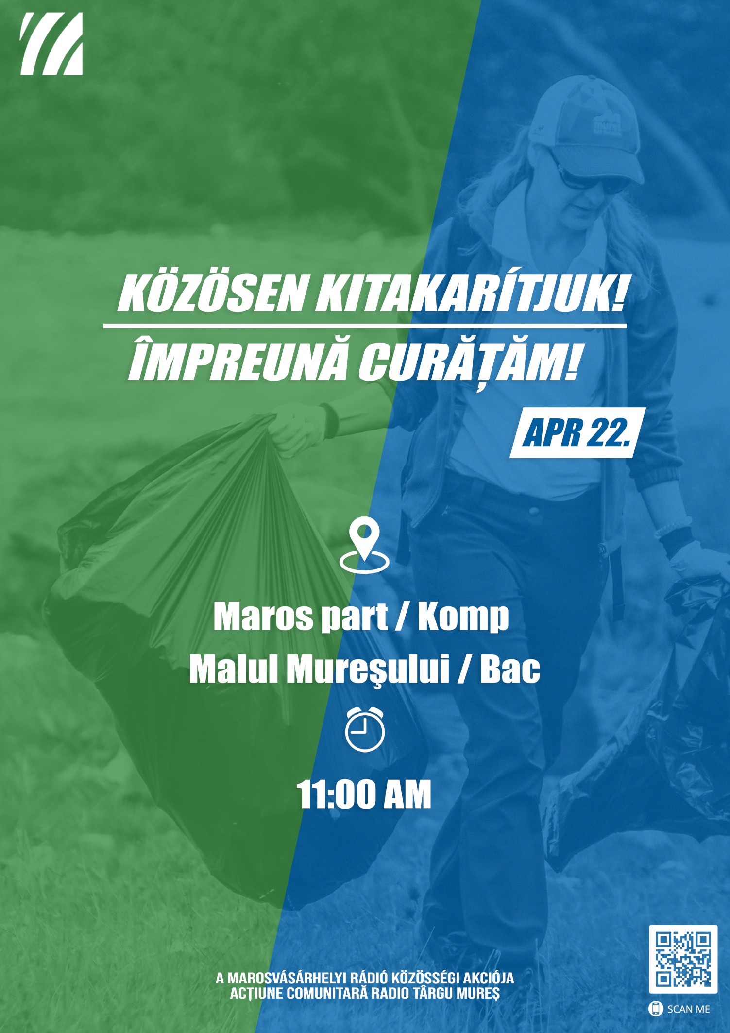 „Szombaton 11 órától várjuk Önöket is a Közösen kitakarítjuk!-ra, hogy együtt tegyünk a Maros-part, a környezetünk tisztaságáért. Közösen kitakarítjuk” – április 22-én 11 órától – áll a szervezők felhívásában.