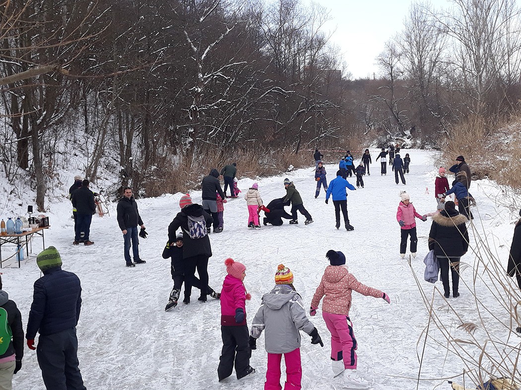 Az önkéntesek szombaton letakarították a havat a jégről, a természetes akadályokat és a pályát bekerítették, és vasárnap délutánra meghirdették a korcsolyázást. Egy-két óra alatt közel kétszázan lepték el a Szakadát utca végében kialakított felületet. Különböző felajánlásokból a szervezők ingyenteával, forralt borral kínálták az embereket, falatozni is lehetett, a teret hangulatos zene töltötte be, estére bekapcsolták a világítást, hogy mindenki jól érezze magát és szórakozzon. Kacsó István szerint a látogatók nagy száma a legnagyobb elégtétel. Olyan emberek találkoznak itt, akik hétköznap legfennebb csak köszönnek egymásnak az utcán, de itt csoportokba gyűlve beszélgetnek. A közösség igényli ezt a fajta szórakozást is – mondta el, hozzátéve, hogy ha az időjárás továbbra is hideg marad, a tűzoltók a következő hétvégére a jelenlegi ötszáz négyzetméteres pályát további kétszázzal bővítik, és szombatra ismét meghirdetik a korcsolyázást.