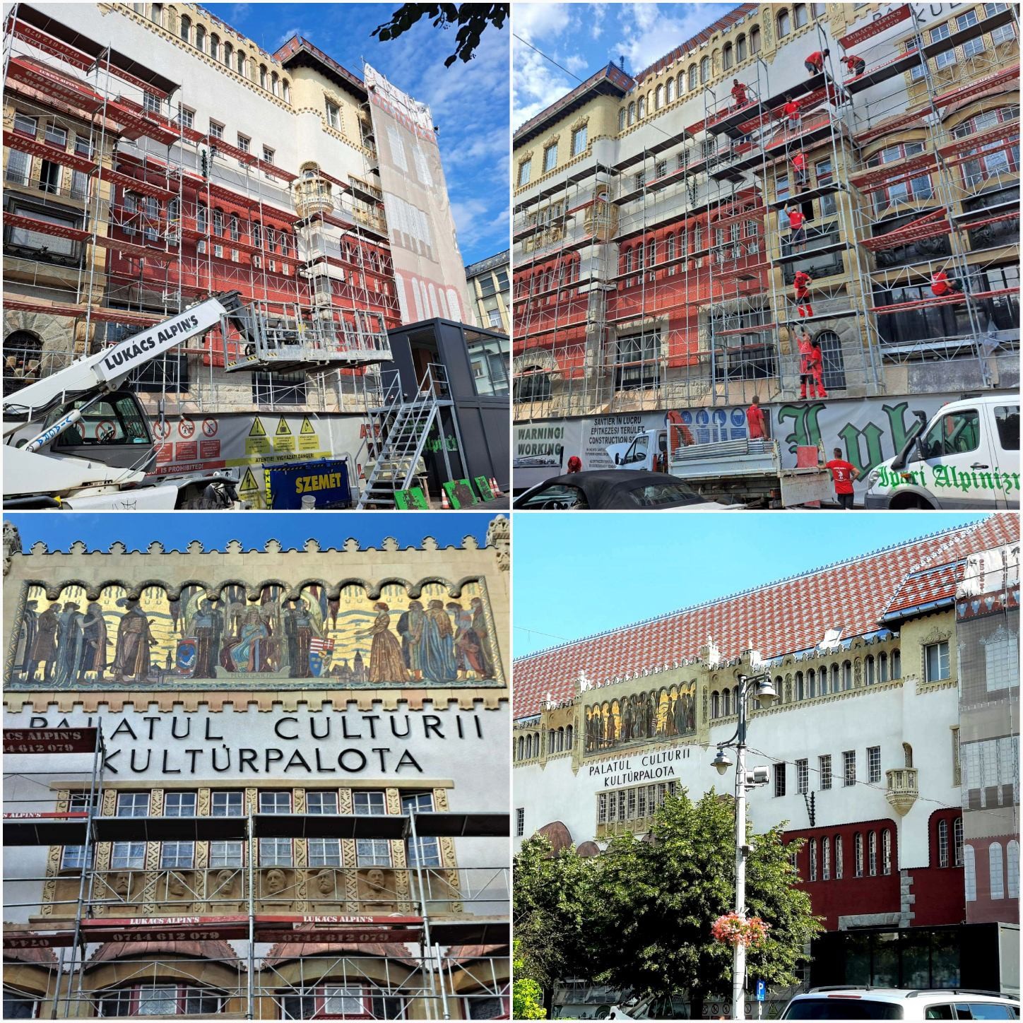 Pénteken a Lukács Alpins munkásai eltávolították az állványokat a Kultúrpalota főhomlokzatáról. Ezzel láthatóvá vált, hogy felújítás után milyen lett Marosvásárhely éke, a Bernády György polgármester által építtetett csodálatos szecessziós épület.