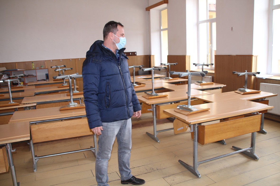 – Minden diákunknak, aki igényelte, táblagépet adtunk, a húsz asztali számítógépből majdnem minden tanárnak jutott, az internet-összeköttetés biztosított – tájékoztat Veres Mihály Marcel angol szakos tanár, az iskola aligazgatója (képünkön). Ennek ellenére úgy gondolja, hogy senkinek sem könnyű a helyzete, mert nem jó az, ha a diák egész nap a képernyő előtt ül. Véleménye szerint 30 perces órákon is meg lehetne magyarázni az új tananyagot.