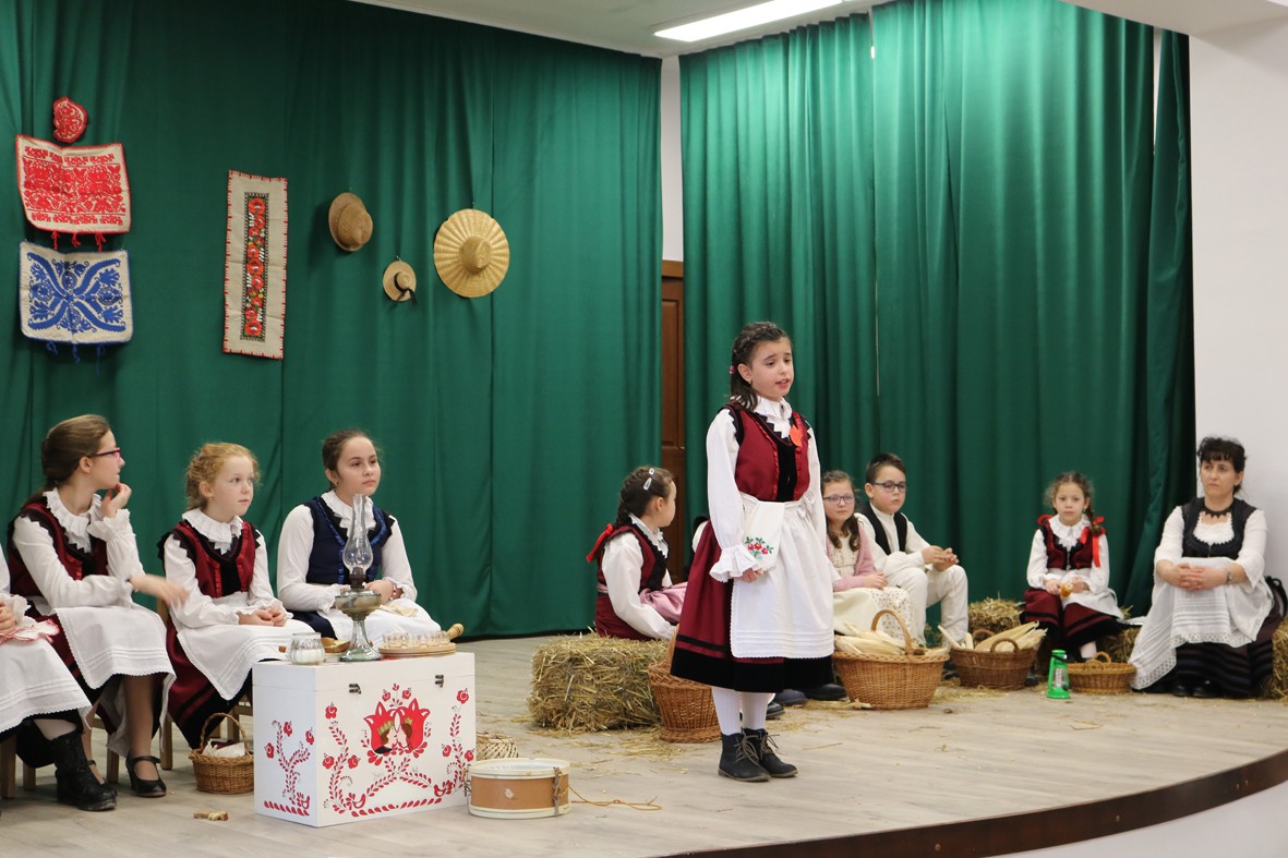 A vendégek köszöntését követően Berekméri Enikő tanítónő a népmesék születéséről beszélt a gyerekeknek. Elmondta, hogy valamikor nagyon régen születtek, bölcsőjük a falu, a tanya volt, szülei pedig írni-olvasni nem tudó, egyszerű emberek. „Képzeljük magunkat olyan környezetbe, ahol nem villanyfény világít, hanem lámpa, mécses. Itt beszélgetnek egymással az emberek vágyaikról, álmaikról, mindennapi munkájukról. Gondolatban túllépnek a valóság határain, s az új, elvarázsolt világban a jóság győz a gonoszság felett. Nézzük hát meg, hogyan is történt mindez valamikor régen” – vezette be a mesék világába a versenyzőket a tanítónő. A marossárpataki harmadikosok és negyedikesek A kisgömböc című népmese feldolgozását mutatták be, hogy a jelenet segítségével a kis másodikosok még jobban megértsék a mesék születésének körülményeit. A jelenlévők megtudhatták, hogy régen az emberek hiszékenyebbek voltak, mint napjainkban, nagyon sokan hittek a babonákban. Valaki kitalált egy történetet, amit elmesélt. A hallgatóság köréből néhányan továbbmondták, kiszínezve, kiegészítve. S a történet szájról szájra terjedt.