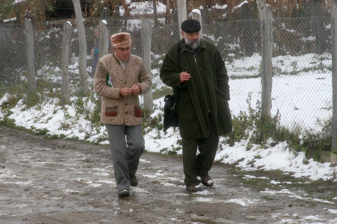 Szabó Károly tanító bácsi és e nekrológ írója Bólyában, 2006-ban Fotó: Halmágyi Zsolt