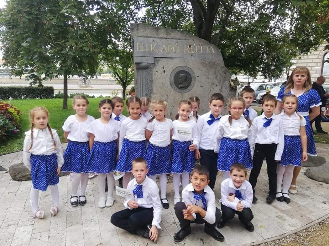 Feledhetetlen élmény marad ez a nap a nyárádszeredai Deák Farkas Általános Iskola első osztályos diákjai számára is, akik a Székelyföldi Legendárium meghívására a magyar népmese napját Budapesten ünnepelhették meg. A harmadik alkalommal megszervezett találkozóra idén is meghívást kaptak azok a csapatok, amelyek az idei második Kárpát-medencei Legendárium júniusi székelyudvarhelyi karneválján kitűnő előadásokkal mutattak be mondákat, legendákat. A szeredai apróságok a nyárádmagyarósi Kati kútja monda feldolgozásával lettek másodikok, így a többi díjazottal együtt (a felvidéki Rozsnyó és Beregszász, az erdélyi Szamosújvár és Felsősófalva, a vajdasági Csantavér) tölthettek néhány napot a magyar fővárosban. A Várkert Bazárban hétfőn megtartott fesztiválon ismét előadták a nyárádmenti mondafeldolgozás nyomán összeállított darabjukat, de hazai ismerősöknek is tapsolhattak, ugyanis a nap programjában idén is ott szerepelt a nyárádszeredai Bekecs táncegyesület Legendák kertjében című mesejátéka is. A nyárádmenti gyerekek nem hagyták ki Elek apó kútjának meglátogatását sem. Benedek Elek, a nagy mesemondó 160 évvel ezelőtt ezen a napon született. „Hála és köszönet, hogy ennyi csodálatos élményben lehetett részünk. Elek apó és Kányádi Sándor bácsi nyomában járni első osztályosan nagy megtiszteltetés és felemelő érzés volt” – jegyezte be közösségi oldalán Kátai Judit tanítónő.