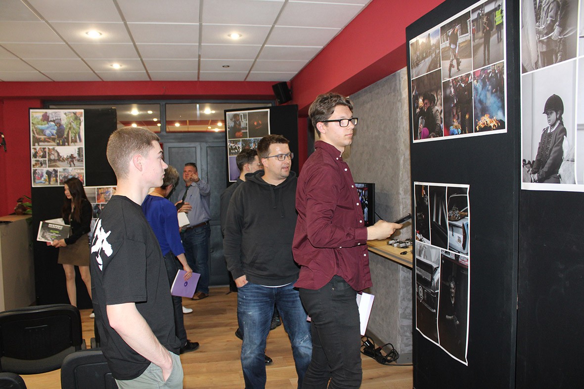 A konferencia második és harmadik szekciójának előadásai közötti szünetben pedig a magyar kar által meghirdetett Sajtófotó-pályázat képeiből összeállított, és a konferenciának is helyet adó előcsarnokban berendezett kiállítást mutatták be, ugyanekkor díjazták a nyerteseket is. Amint arról korábban mi is írtunk, az egyetem XI. és XII. osztályos tanulók számára hirdetett fotópályázatot, amelyre egy olyan, sajtófotó jellegű képsorozatot vártak, amelynek egy történetet kellett elmesélnie, eseményt rögzítenie vagy illusztrálnia. A beküldött pályaműveket az intézmény szakbizottsága bírálta el, a díjakat pedig Kós Anna, a magyar művészeti kar dékánja és Jakab Tibor, az egyetem média szakának tanára adta át. A zsűri különdíját Deák Katalin érdemelte ki, szociofotó-különdíjban részesült Csegzi Andrea, portrékülöndíjban Gödri Szabolcs. Harmadik díjat nyert Maróti Szilárd, Henn-Domahidi Ábel, Fülöp Laura Lilongó és Nagy Róbert Hunor, második díjat kapott Leopold Tamás, Szövérfi Zsolt és Szász Erika, a pályázat fődíját, az egyetem audiovizuális kommunikáció szakára érvényes könnyített felvételit pedig Köllő Emese érdemelte ki munkájával.