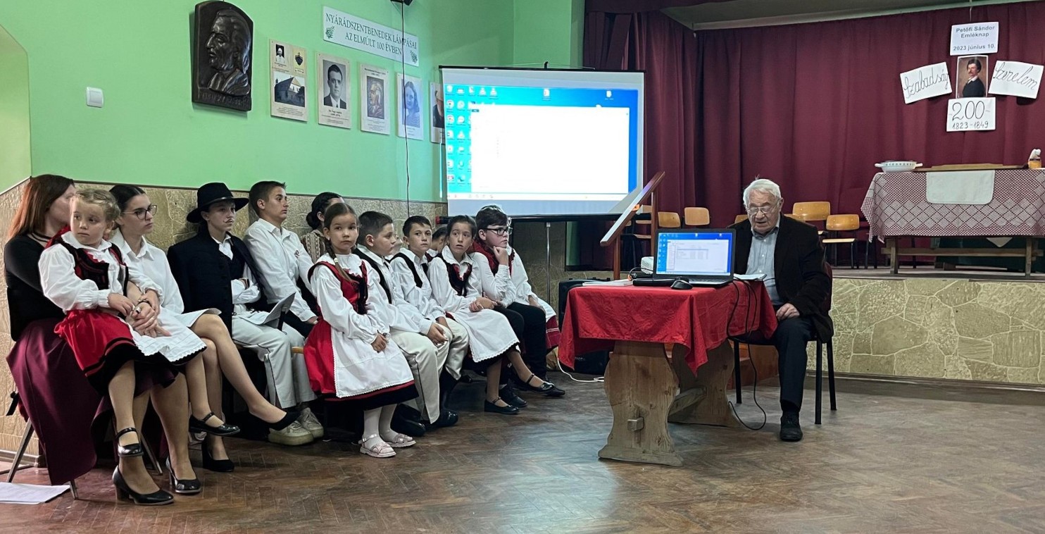 Kicsik-nagyok együtt, nagy lelkesedéssel emlékeztünk Petőfire a legnagyobb magyar költő születésének 200. évfordulóján, az Együtt Nyárádszentbenedekért Egyesület és a Nyárádszentbenedeki Református Kórus által szervezett Petőfi-emléknapon. A forgatókönyvet írta és az ünnepi műsort levezette Szabó Eszter irodalom szakos tanárnő és Nám M. Emese tanítónő.