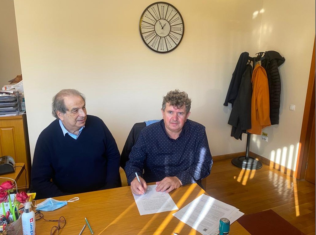 Moscovici és Takács Szabolcs polgármester aláírják az adásvételi szerződést