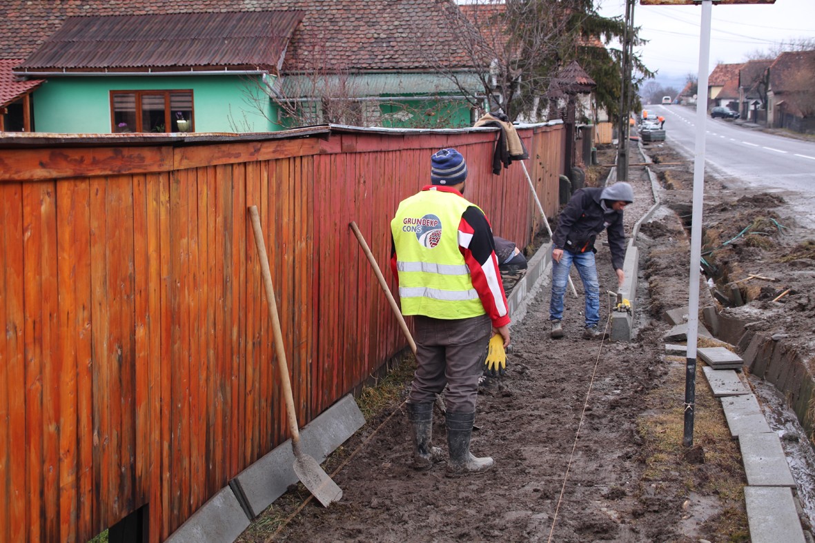 Eközben azzal a problémával szembesültek, hogy mivel a római castrum miatt az útszakasz egy része felügyelet alá került a környezetrendezési terv szerint is, a munkákat leállították a Vas utcában 140 méter szakaszon, a Tót utcában egy 100 méteres szakaszon, és a Jakab utca teljes hosszában, mert az már a castrum területén van. Ott a muzeológusok épületmaradványokat találtak. A feltárás megtörtént a Vas utcában és a Tót utcában is, várják a kultuszminisztérium válaszát, hogy újrakezdhessék, illetve folytathassák ezekben az utcákban a munkálatokat. A sáncok még nincsenek mindenhol készen. Maradt munka még a Temető úton, egy 100 méteres szakasz, valamint a Tót és a Jakab utca befejező szakasza is hátravan. Ennek a beruházásnak az értéke 5 millió 553 ezer lej, eddig ebből az átvett munkálatok alapján a vállalkozónak több mint 2 millió lejt fizettek ki. A Leader pályázaton is nyertek támogatást járdásításra. Ennek az értéke 599 ezer lej, amiből az önkormányzat önrésze 300 ezer lej: 730 méter járdájuk van, és 420 méter fedett sáncot készítettek a falu központi részén. Az építést önerőből végzik, a falu felső részét összekötik a központi résszel, és folytatják majd a központi résztől a falu másik vége felé. Hogy a falu lakóinak ne az országúton kelljen közlekedniük.