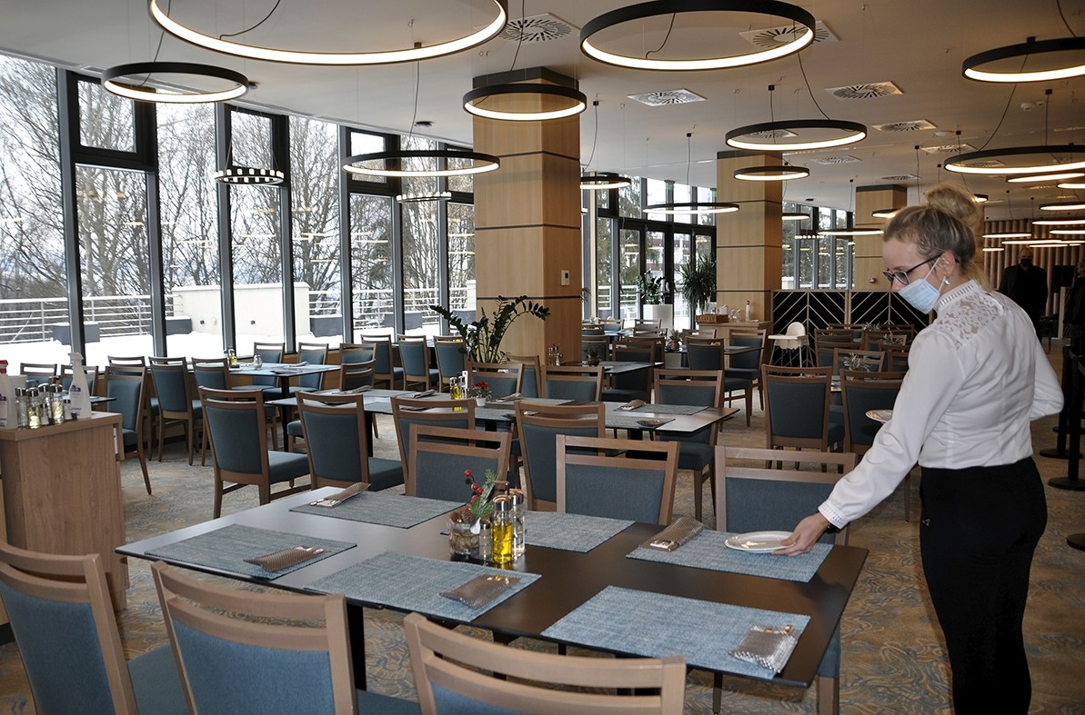 – Sokat mérlegeltük, hogy miként lehet biztonságosan fogadni a fürdővendégeket, hiszen még mindig sokan utasítják el az oltást. Kényelmetlennek és költségesnek találtuk a 48 órás teszteket, így az oltásigazolást kérjük a vendégeinktől. Sikerült meggyőzni a hatóságokat, hogy ne „minden sarkon” ellenőrizzék azokat, akik gyógykezelésre jelentkeztek. Elég, ha a szállodába lépéskor kérjük az igazolványt, utána az épületben bárhova lehet menni. Kintről senkit sem engedünk be az étterembe, egyrészt azért, mert az éttermek csupán 50%-os kapacitással működhetnek. Ezekkel a belső szabályokkal tudtuk megszervezni a karácsonyi és a szilveszteri ünnepet, és örömmel tapasztaltuk, hogy vendégeink megszokták, hogy a járvánnyal együtt éljenek, csak bizonyos szabályokat be kell tartani. Szerződésünk van egy epidemiológus főorvossal, aki minden folyamatot felülvizsgál, hogy az egészségvédelmi szabályok szerint járjunk el. A személyzet csak a neki szánt bejárót használja, ellenőrzés után kötelező a maszk és a védőkesztyű viselése.