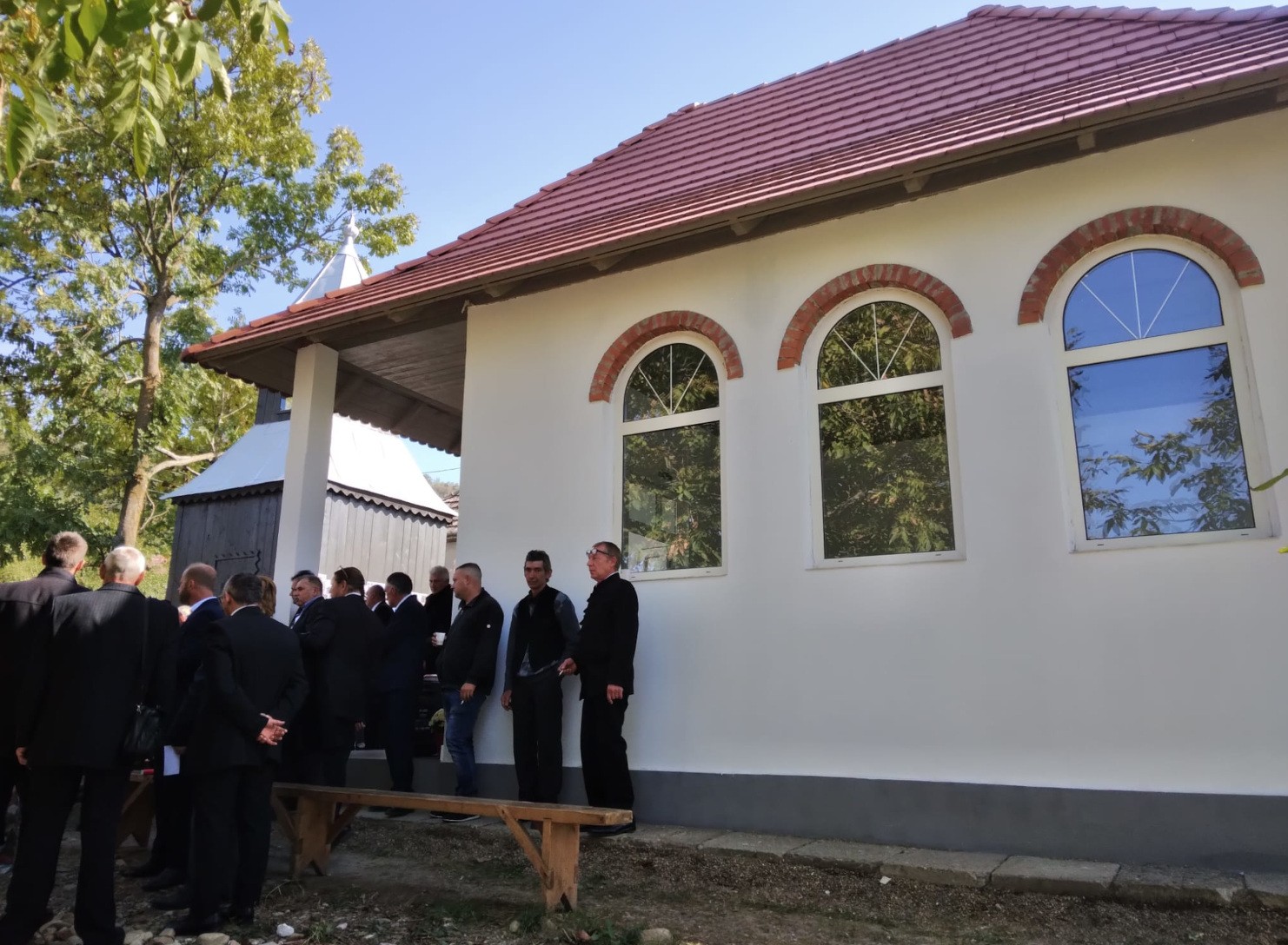 A munka terhének nagy része a mezőbergenyei gyülekezetre hárult, ahol az ötlet született. Sok segítség érkezett a mezőbándi önkormányzattól. 2021 őszén kitakarították a telket, s következő tavasszal kijelölték a templom helyét. A hivatal munkagépei megásták, majd megöntötték az alapot. Tavaly júliusban nagy egyházmegyei közmunkát szerveztek, ezen több mint 40-en gyűltek össze 15 gyülekezetből. A folytatás a bergenyeiek gondja volt, koszorút öntöttek, elkészítették a tetőt, kéményt raktak, behelyezték az udvarfalvi Paizs Tibor által adományozott ablakokat, aztán jött a vakolás, a mennyezet felhelyezése, az előtér kialakítása, a kapu elkészítése, és legvégül a harangláb felújítása.