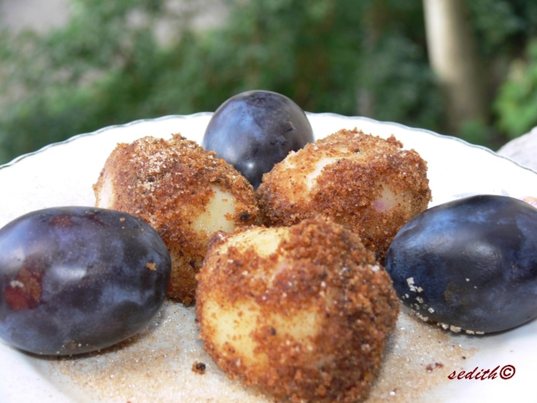Elkészítése: A szilvát kimagozzuk úgy, hogy a szemeket nem tépjük ketté. 1 teáskanál fahéjat összekeverünk 3-4 evőkanál cukorral, és teáskanál segítségével betöltjük a szilvamagok helyére. Az olajban megpirítjuk a zsemlemorzsát (ha szükséges, még teszünk hozzá kevés olajat), és félretesszük, amíg a gombócok elkészülnek. A gombóchoz fölforraljuk a vizet az olajjal és a sóval, majd egyszerre beletesszük az összes lisztet, és gyors mozdulatokkal elkeverjük. Félrevesszük a lángról, és addig dolgozzuk össze, amíg a tészta egynemű nem lesz, illetve el nem válik az edény falától. Kb. 5 percig hagyjuk még hűlni a masszát, miközben néha belekavarunk, majd egyenként hozzáadjuk a tojásokat, és elkeverjük (a következőt csak azután adjuk hozzá, miután az előzőt már jól eldolgoztuk benne).