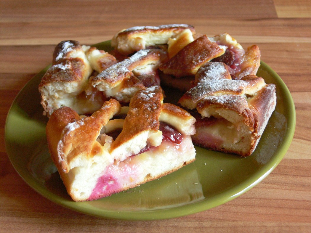 Hozzávalók a laphoz: 20 dkg liszt, 5 dkg mandula vagy dió, 3 g szárított élesztő, 5 dkg cukor, 1 tojás, 2 csipet só, 6 evőkanál tejszín, 1-2 evőkanál víz, 5 dkg olvasztott vaj;