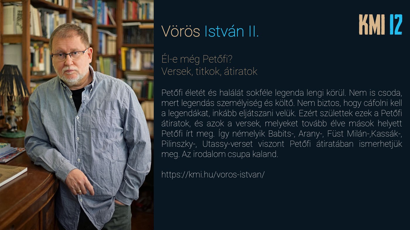 Előtte 15 órától a várban felállított Könyvudvar Téka teraszán Vörös István és Fekete Vince József Attila-díjas költők mutatják be a Ha bármit lehetne… című KMI 12 antológiát, mely igyekszik keresztmetszetet nyújtani a KMI 12 szerzőinek eddigi pályafutásáról. A beszélgetést Luzsicza István, a kötet szerkesztője vezeti.