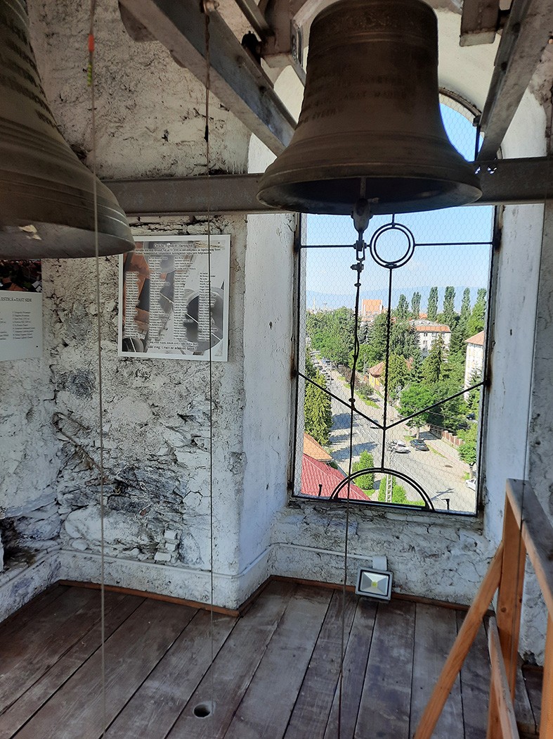 – Tudni kell még a harangokról, hogy 2016-ban restaurálták őket, és elektromágneses húzóberendezéssel látták el, tehát automatikusan be lehet állítani a harangozást, nincs szükség kézi harangozásra. A torony a kommunizmus idején zárva volt, csak az egyháztagok jártak ellenőrizni a harangokat és a szerkezet állapotát, olykor kitakarították, apró javításokat eszközöltek a feljárón és a harangok termében, ahol dróthálót feszítettek ki, hogy a madarak ne rakjanak fészket a toronyban.