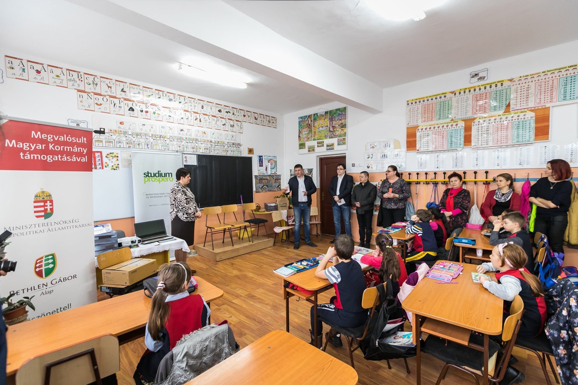 A Bethlen Gábor Alap támogatásának köszönhetően didaktikai eszközöket adományozott a marosvásárhelyi Serafim Duicu Általános Iskola elemi osztályos diákjainak a Studium Prospero Alapítvány. Az 1500 euró értékű felszerelések ünnepélyes átadására csütörtökön került sor a Meggyesfalvi negyedi tanintézetben.