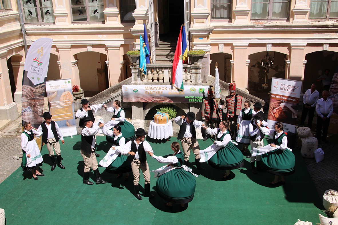 Az ünnepi beszédek után a kisfülpösi Verőfény és a görgényüvegcsűri Csalogány néptánccsoport lépett színpadra, majd Kilyén Ilka Bódás János Új kenyér című versét adta elő. Ezt követően sor került a Maros, Nyárád, Küküllő menti és mezőségi gazdakörök képviselői, valamint az anyaországi gazdák gabonájának összeöntésére, majd elérkezett a legemelkedettebb pillanat, amikor Bakó Béla Pál atya és Nagy Ferenc református lelkipásztor megáldotta az új kenyeret. Amint azt Gnädig Kornélia műsorvezető elárulta, a gabonából a magyarózdi terápiás otthon és Pál atya árvaháza részesül.