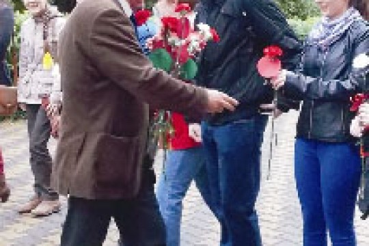 Diákok sorfala fogadta virággal a MOGYE bejáratánál kedden dr. Miseta Attila professzort, a Pécsi Tu...