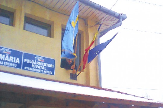 Sikerült kitűzni a székely zászlót a polgármesteri hivatal épületére.