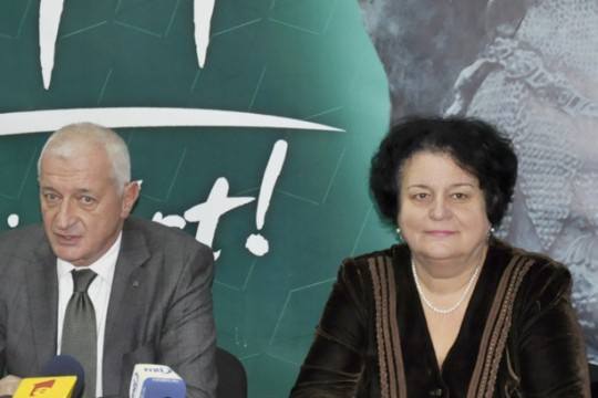 Az Erdélyi Magyar Néppárt marosvásárhelyi jelöltjei: Jakab István szenátorjelölt, valamint Portik...