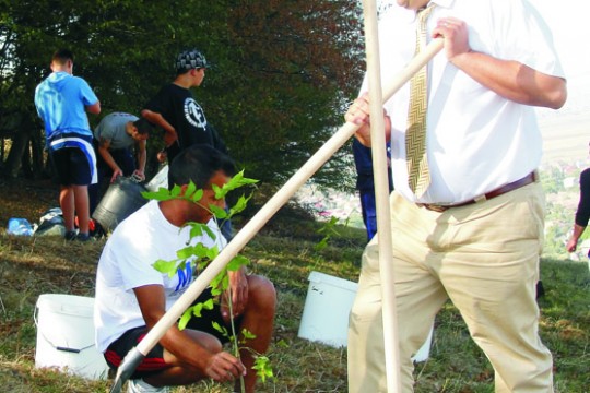 Szombaton délelőtt mintegy félszáz facsemetét ültettek el a marosszentgyörgyi Cinege-erdő mellett...
