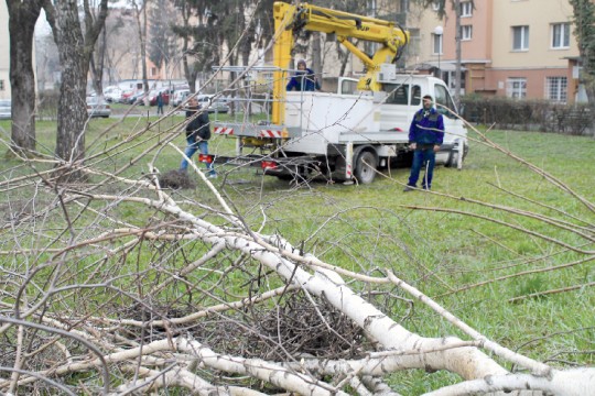 Pénteken a Székely Vértanúk utcában folytatta fanyesési akcióját a helyi polgármesteri hivatal munka...