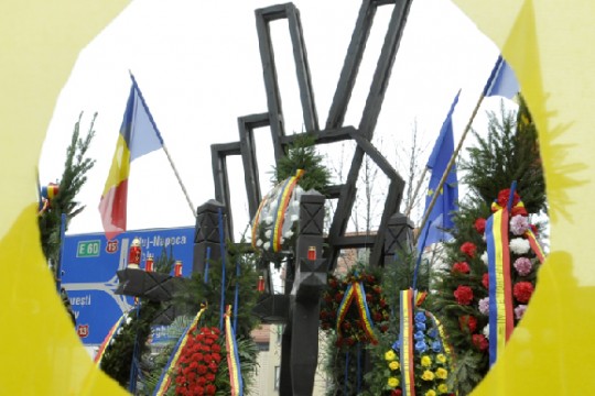 Hétfő délben a marosvásárhelyi Győzelem téren felállított emlékműnél az 1989. december 21-i forradal...