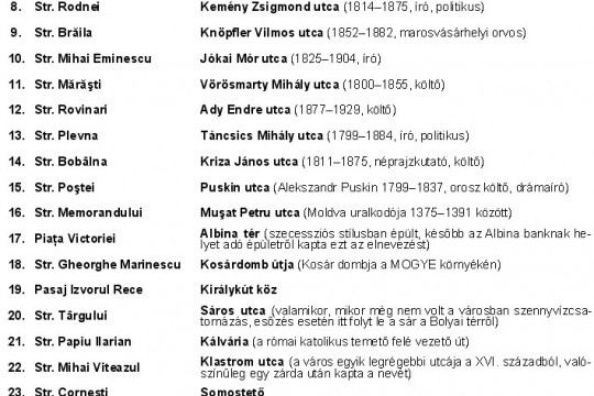 Marosvásárhelyen kikerülnek a hagyományos (történelmi) utcanevek!