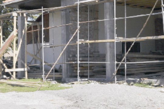 Hosszabb ideje építőtelep a nyárádköszvényesi kultúrotthon udvara.
