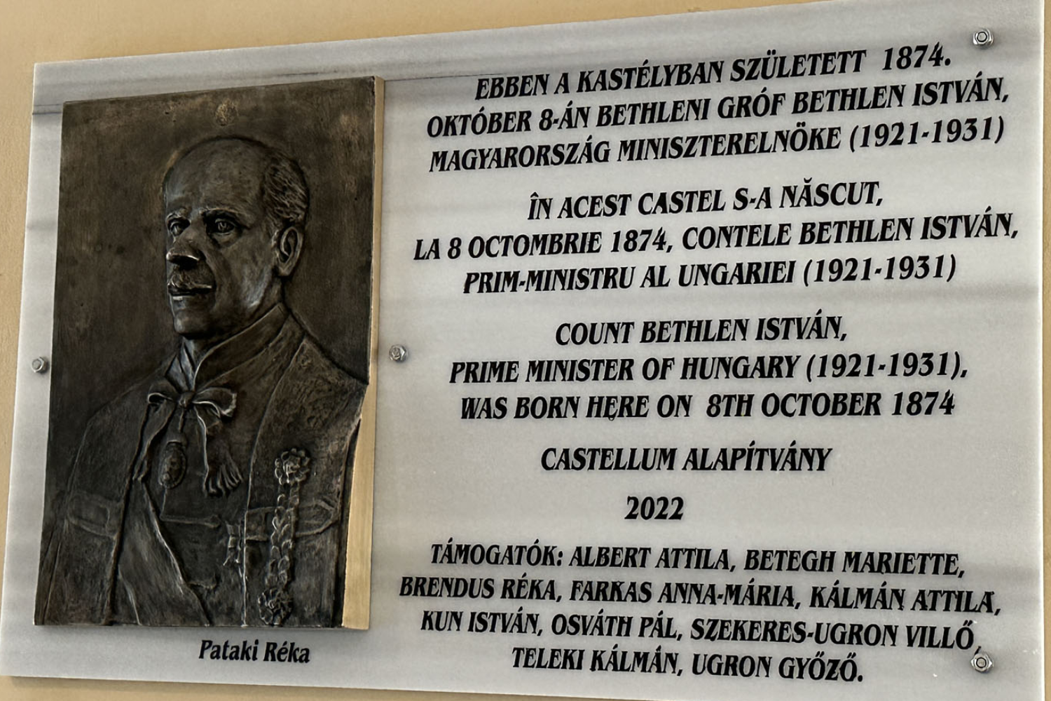 Emléktáblát avattak gróf Bethlen Istvánnak