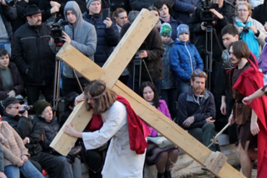 Az idei virágvasárnapon is sok százan kívánták látni a marosvásárhelyi Színház téren évről évre bemu...