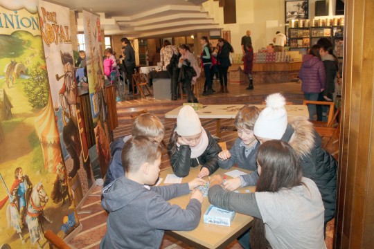 Színes kártyákat rakosgató, pingvinfigurákkal „lépegető” kisdiákok, asztali minibirodalmakat építő t...