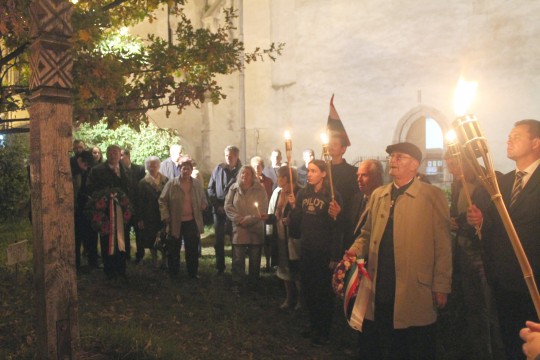 Az ünnepi megemlékezést követően a résztvevők égő fáklyákkal vonultak fel a Vártemplomba.