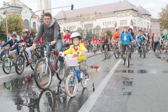 Vasárnap délben kerékpáros gyermekek és felnőttek veszik pár órára birtokba Marosvásárhely főterét.