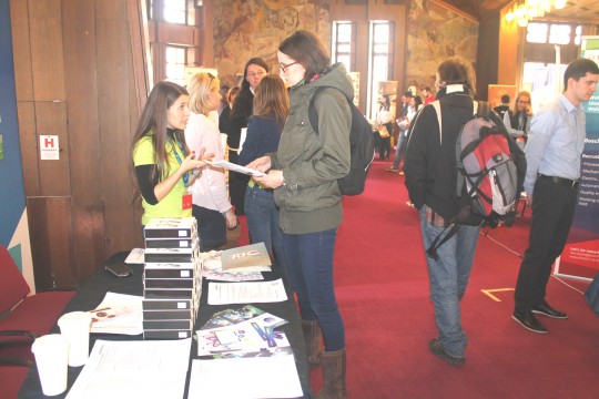 A Marosvásárhelyi Nemzeti Színház előcsarnokában szervezett állásbörzén nagyszámú érdeklődő vett rés...