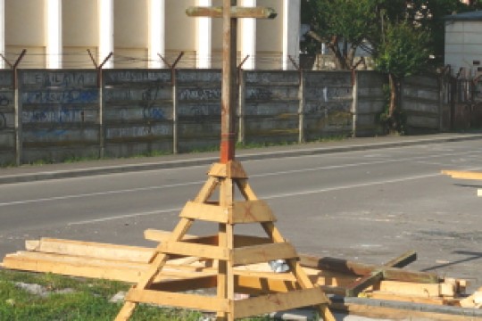 A hatalomváltás zavaros időszakában a múlt héten jelent meg a felvételen látható ácsolt szerkezet a...