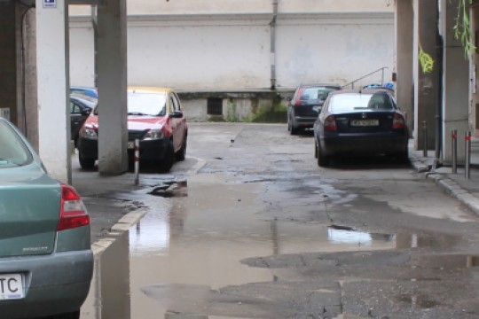 A marosvásárhelyi Bartók Béla utca 6. szám alatti tömbház bejárata előtt óriási víztócsa áll. De nem...