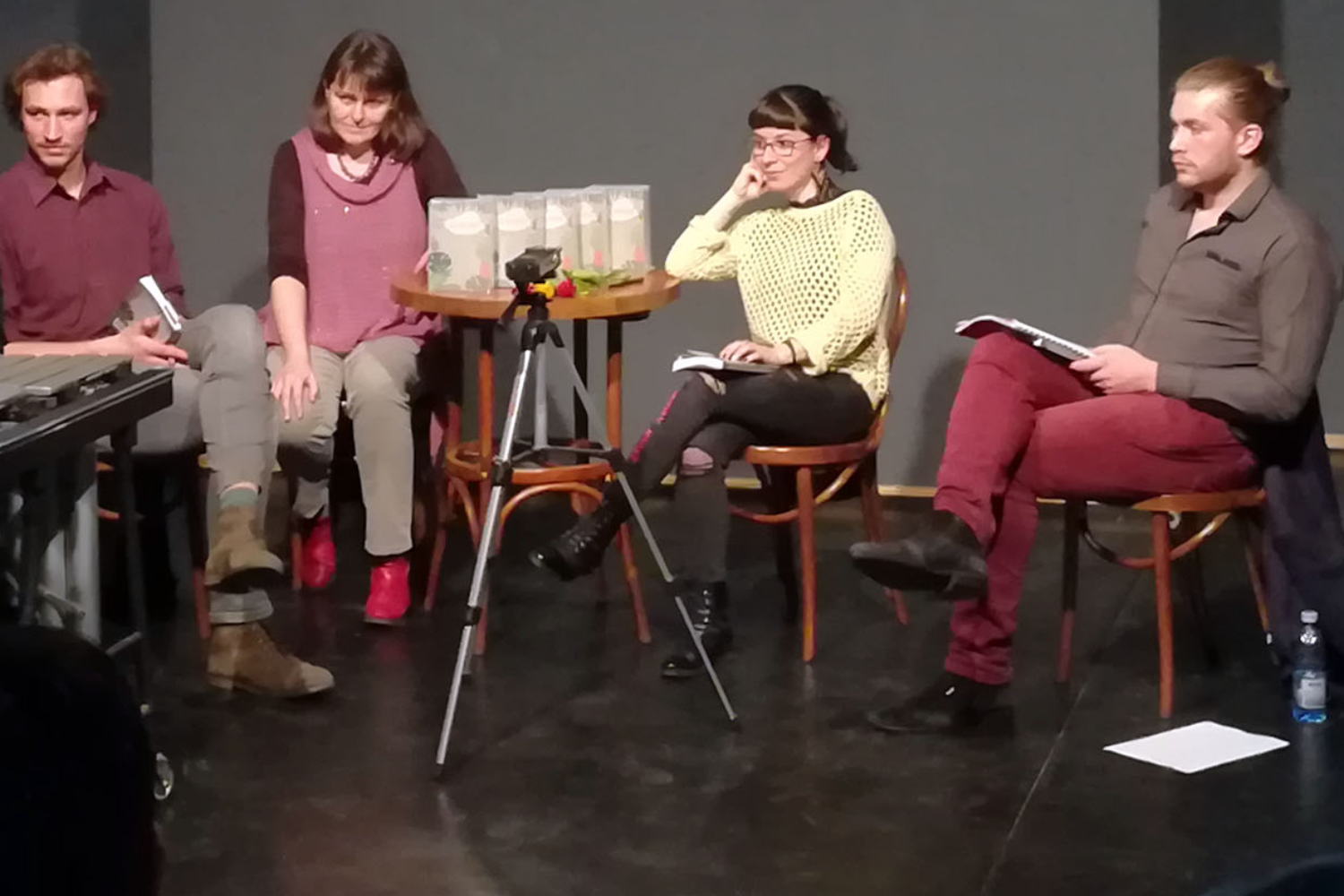 Hegedűs Bálint forgatókönyvíró, B. Fülöp Erzsébet színművész és Purosz Leonidasz költő